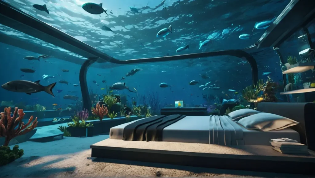 Underwater hotels offer luxury stays while guests watch marine life in real-time.